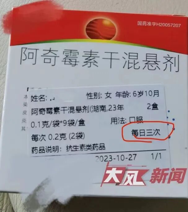 本该一天一次服用的阿奇霉素,开成了一天三次,导致一名6岁10个月大的女童服药后上吐下泻出现昏迷。所幸,后来经过及时检查和住院治疗,孩子恢复良好。