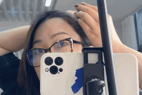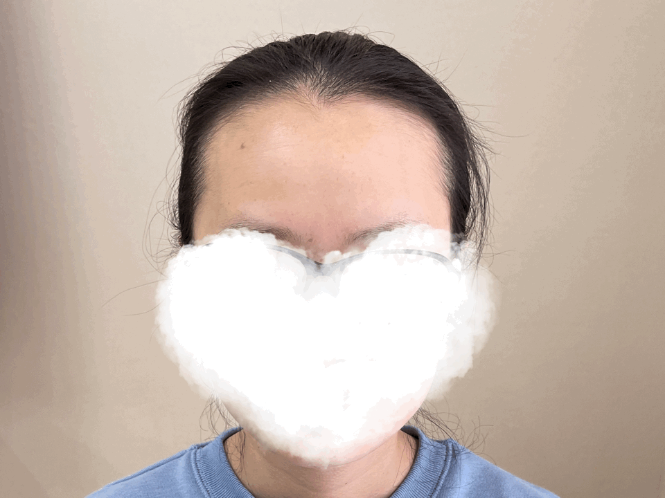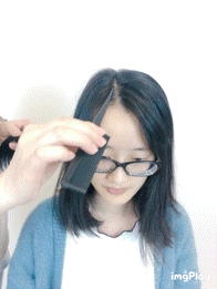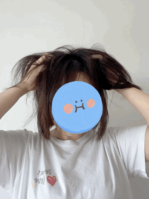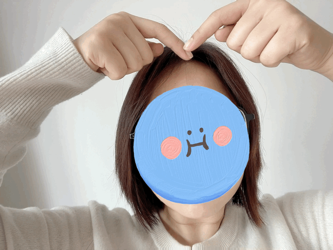 这个发际线是根据自己的头型进行定制的。贴好后,发际线贴会很贴合头皮。最后吹风、梳头都完全不受影响👇: