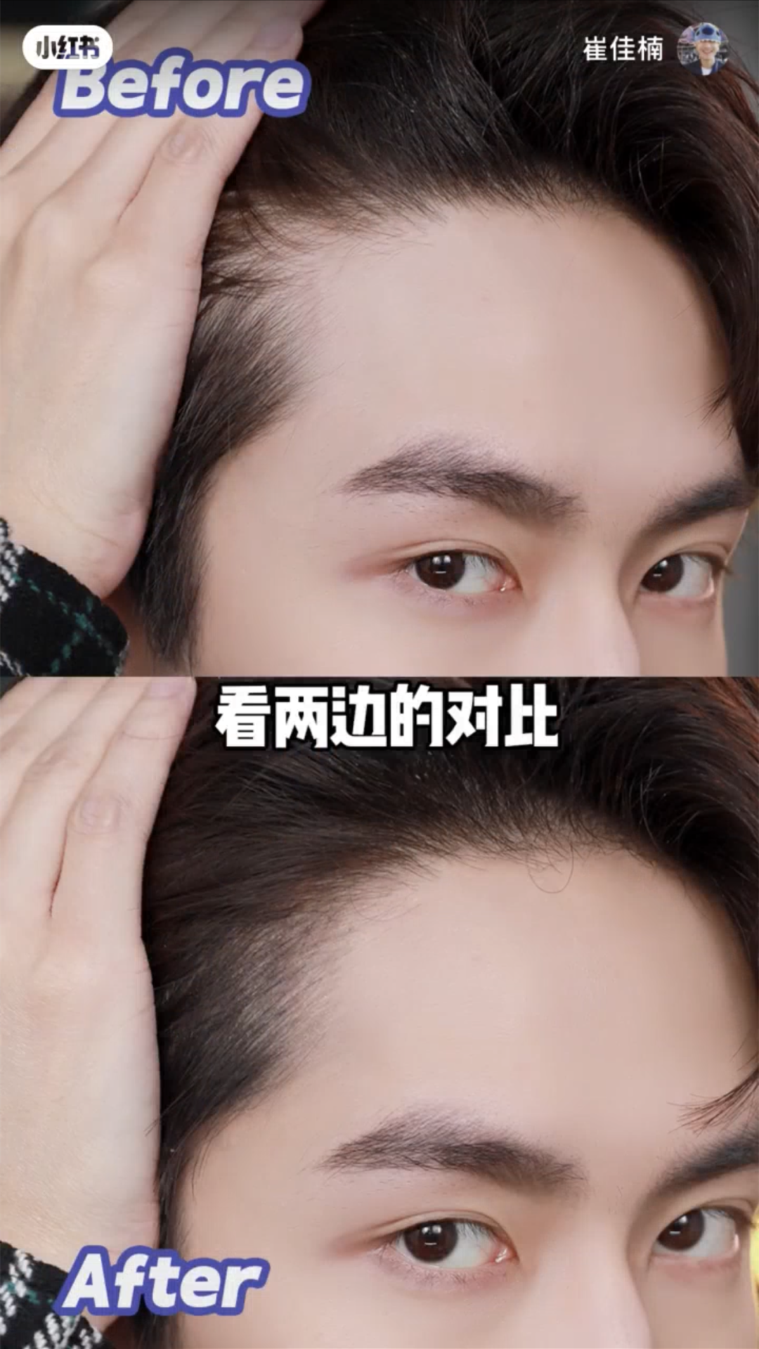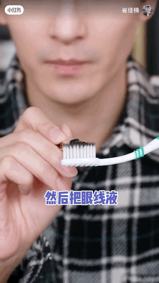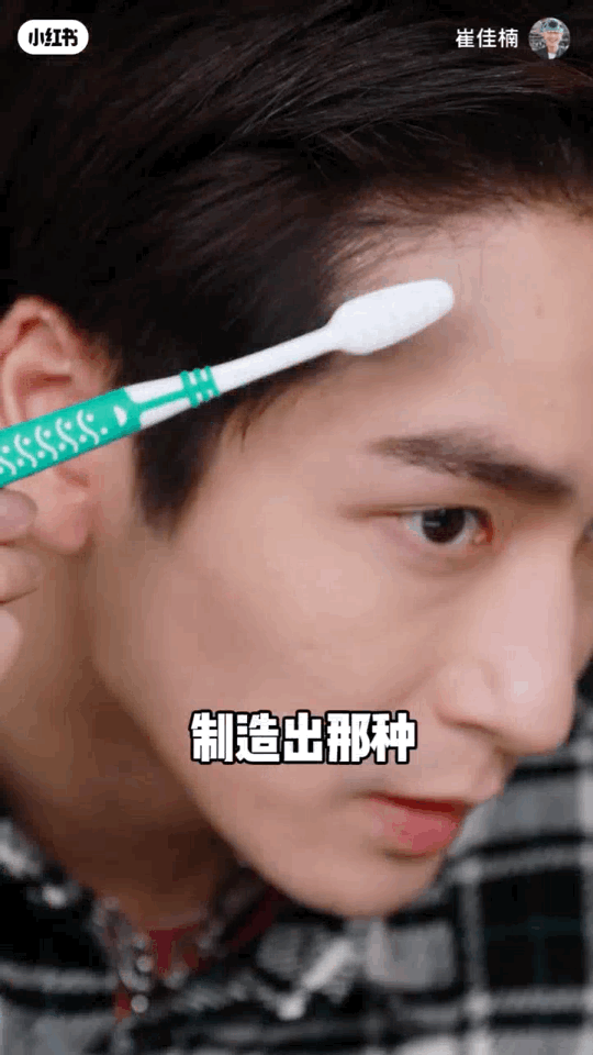 美妆博主崔佳楠之前示范过只用一只牙刷+一只眼线液笔,就打造出自然的、有纹理感的发际线。