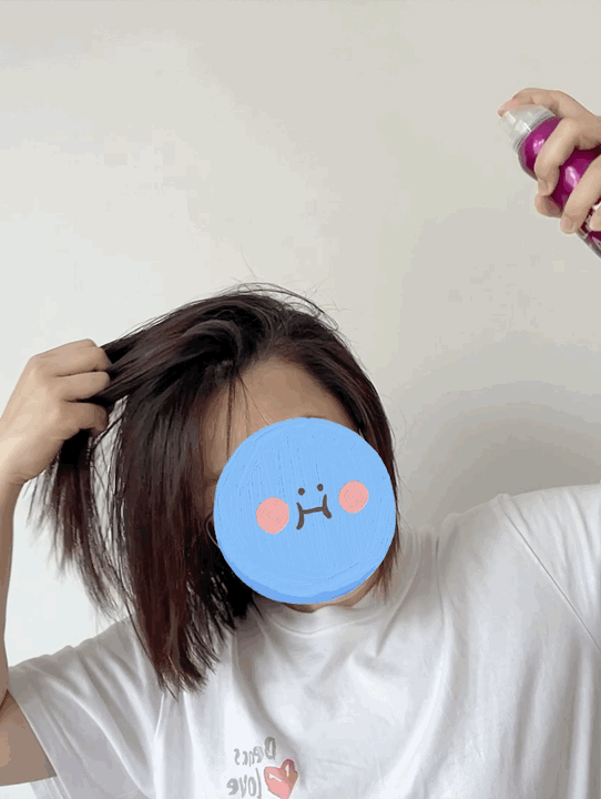 先摇晃瓶身3~5次,在洗完头,头发吹到7成干时,在距离头发一臂远的地方喷上这个喷雾👇: