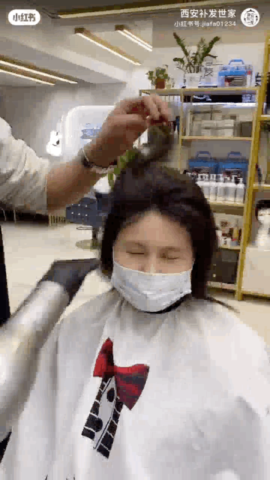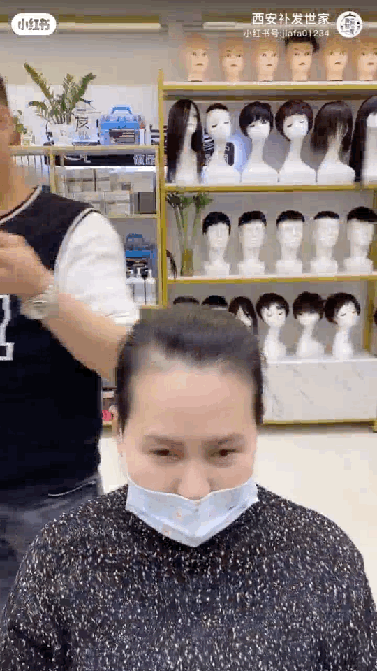假发片种类也很多,有加刘海的、加头顶的、加发尾的、加全头的…