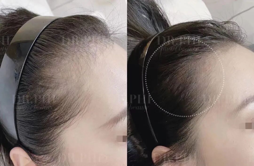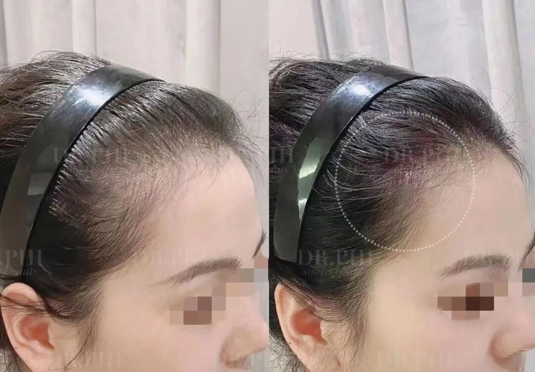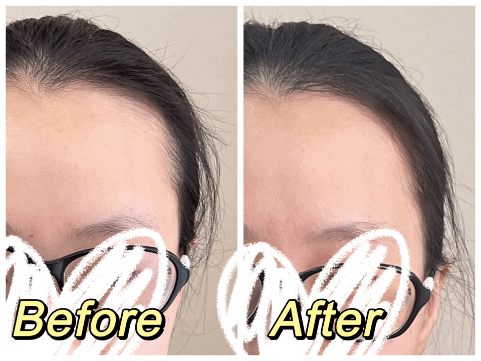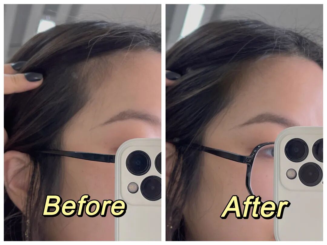 我的好朋友Tina之前就有做过韩式头皮色素疗法,其实就是类似于纹眉的方式,纹上发际线。