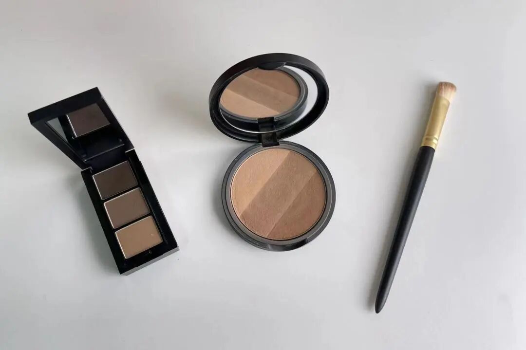 建议咖色、浅棕色这类暖色系头发,选修容盘;若是黑色、深棕色这类比较深的头发,那就用深色眉粉。
