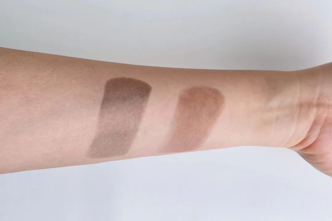 除了色号上分别是棕黑色和棕色,两款的延展性和涂抹流畅度差不多。