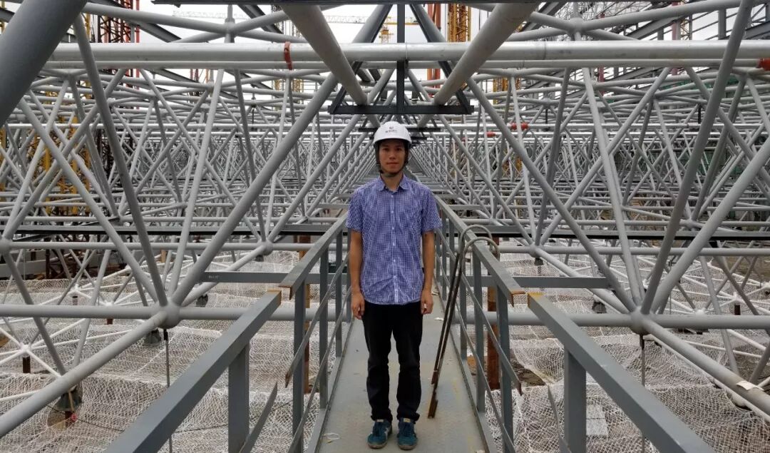 屋盖主体结构就是机库的顶棚,看起来有点像高配版的施工脚手架,钢制的直栏横槛闪着亮光。曲承宝担心,一是因为这次采用了创新的W形结构设计,二是还采用了新材料和新工艺。