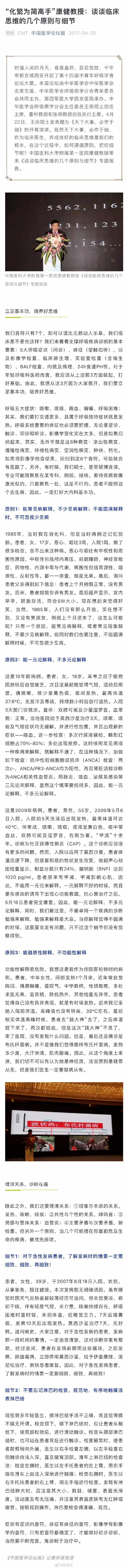 @罗百竹:我再次推荐这篇文章——化繁为简高手康健教授:谈谈临床思维的几个原则与细节!对于青年医生来说,建立一个良好的临床思维是至关重要的,中国医科大学附属第一医院的康健教授就和大家一起谈谈临床思维的几个原则与细节。