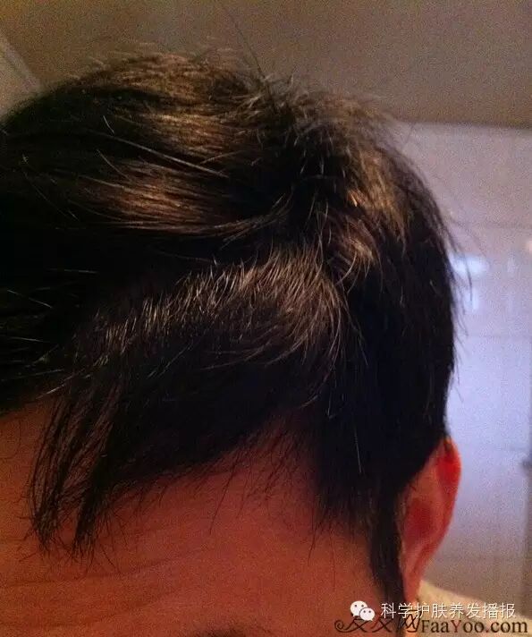 术后74天,基本和术前差不多,不掀开来里面是黑色的,加上部分没掉的和其他头发汇合一块去了,有一定改善作用