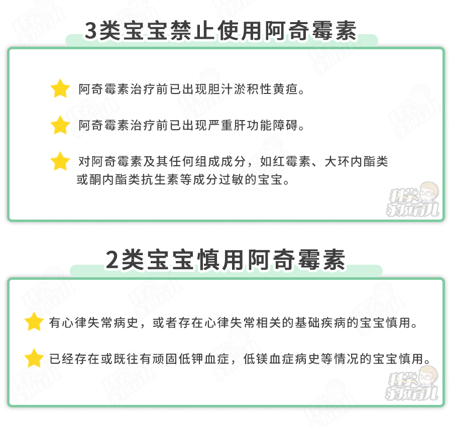 除了这些药不能乱混搭外,还有一些宝宝是要禁用和慎用阿奇霉素的。