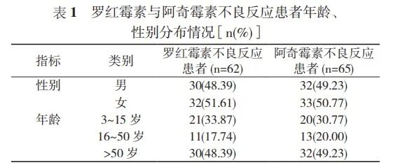 罗红霉素与阿奇霉素不良反应多见于>50 的老年患者和 3~15 岁的儿童, 这主要是由于儿童生理功能发育尚未完善 , 药物代谢能力差 , 而老年患者多合并慢性疾病 , 治疗中常需要合并用药 , 加之机体代谢能力及细胞内线粒体酶活性降低 , 这都使得药物 t1/2 延长 , 血药浓度增加 , 容易发生药物积蓄问题 , 从而引发用药不良反应。