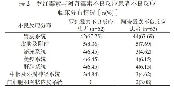 且罗红霉素与阿奇霉素不良反应患者不良反应集中分布在胃肠系统[2]。