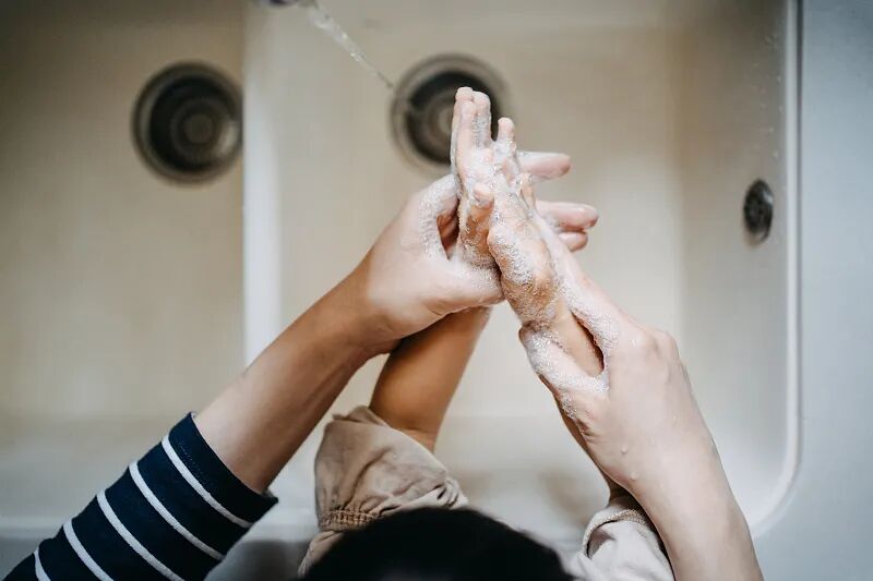 3.注意手卫生,使用肥皂、洗手液在流动水下清洁洗手。如果没有流动水,可用含酒精的免洗洗手液等擦拭消毒双手。