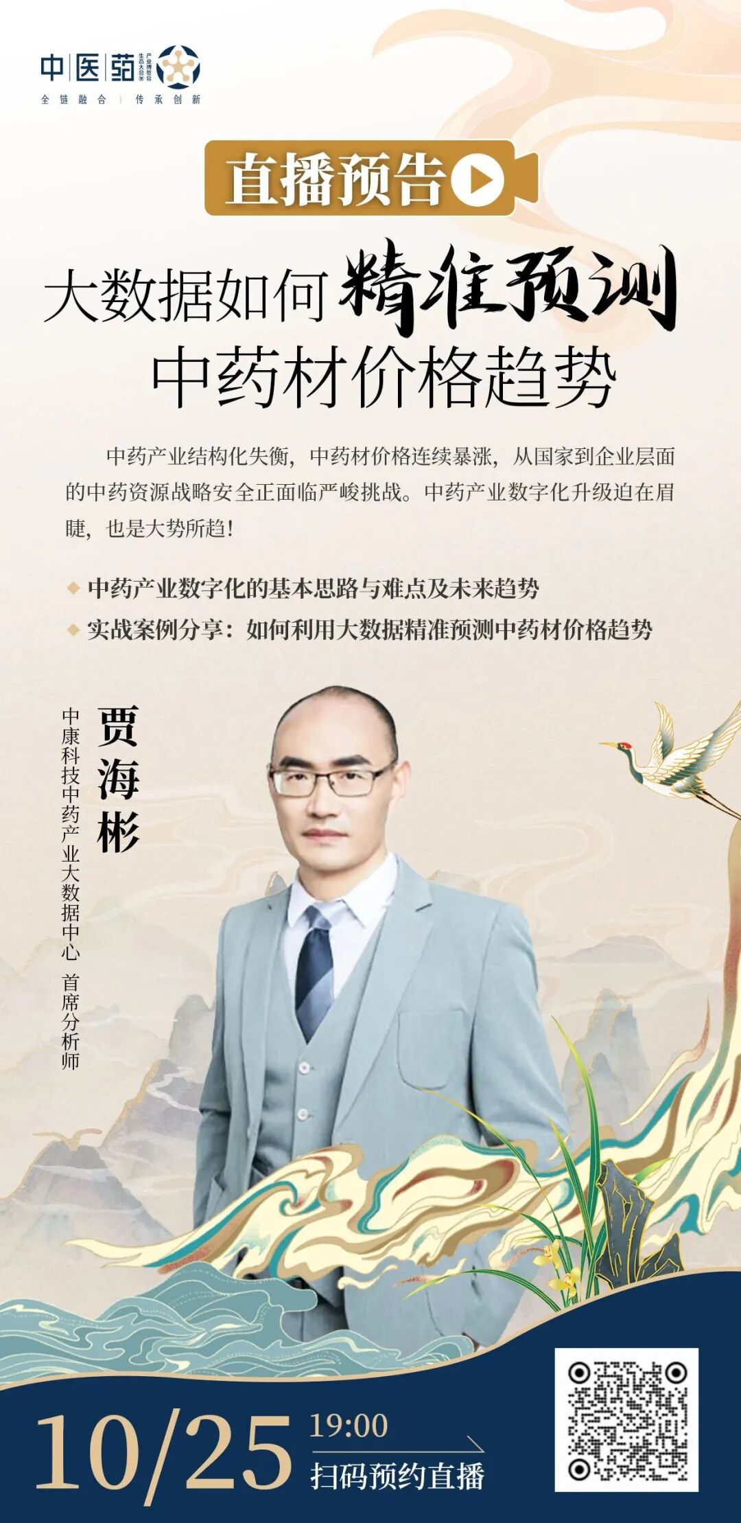 中药材产业如何实现数据闭环,如何对市场行情进行及时监测、预警和预测,10月25日19:00,中康科技中药产业大数据中心首席分析师贾海彬,围绕大数据如何精准预测中药材价格趋势的话题与大家共同探讨,内容覆盖中药产业数字化基本思路与难点、未来趋势以及利用大数据精准预测中药材价格趋势应用案例,敬请关注。