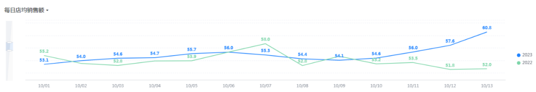 从数据上看,自10月10日以来,全国希舒美的每日店均订单量也在不断走高。10月份的每日店均订单量达到1.28单,瓴速数据显示,与去年同期相比,每日店均订单量同比上升11%。