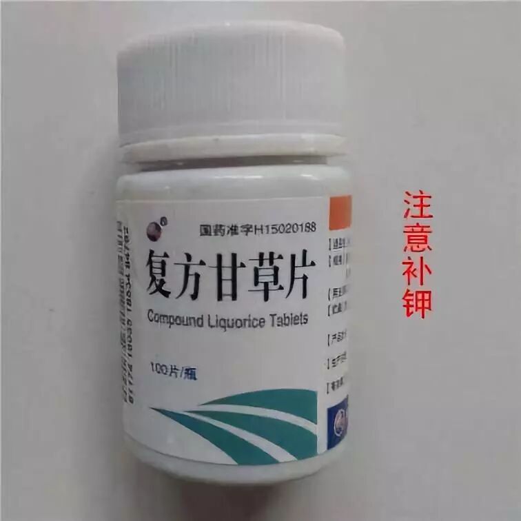 复方甘草片的主要成分甘草甜素在体内水解成甘草次酸,具有盐皮质激素样作用。作用于肾远曲小管引起钾的流失,临床中可以见到引发低血钾的病例。