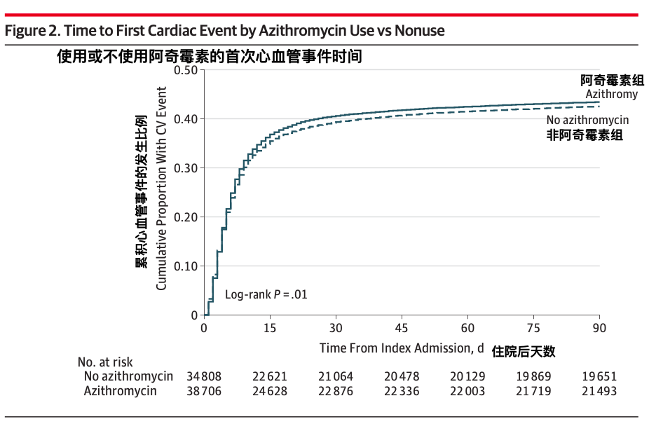 (使用或不使用阿奇霉素的首次出现心血管事件的时间)