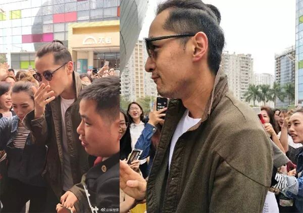 不过,男神最近是不是得罪了造型师哇,怎么就扎起了苹果头生生拗出了心型发际线呢?这强烈的脱发视觉效果,真是心疼老胡1万点啊!