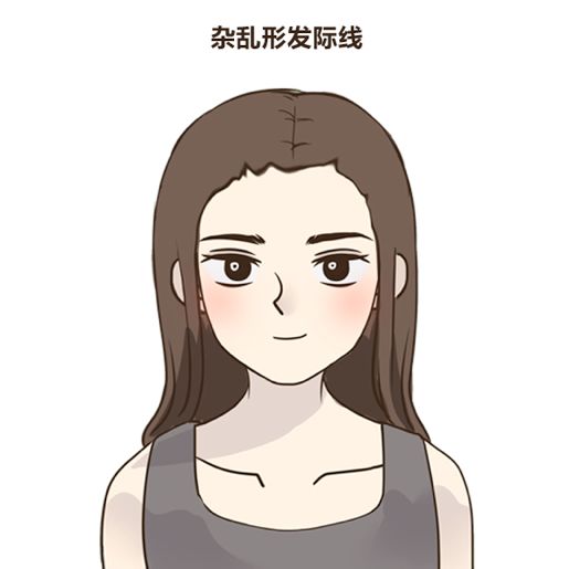 发际线不清晰比较杂乱,没有明显的边界,会给人一种没有特色,不精神的感觉。这种发际线往往会遮盖一部分额头,让人没有气势,并且形状也不好看。