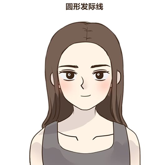 圆形发际线线条圆润柔和,无形之中增加柔美的感觉。这种发际线常见于女性,给人一种甜美,低龄的印象。并且圆形发际线可以更好的修饰额头,让额头看起来更饱满。这种发际线近乎完美,不需要过多的修饰,任何发型都可以驾驭。
