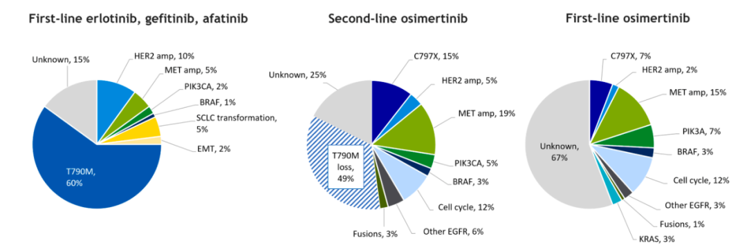 EGFR依赖性耐药主要发生在一/二代EGFR靶向药耐药的患者中,典型代表就是T790M突变[1]。