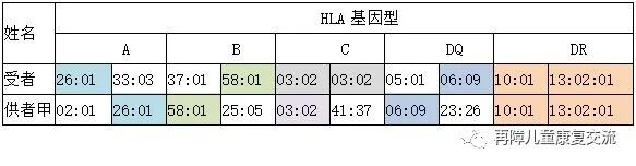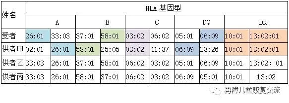 供者乙和受者的HLA-A、B、C、DQ、DR五个位点中10个点均相合,我们称之为全相合。