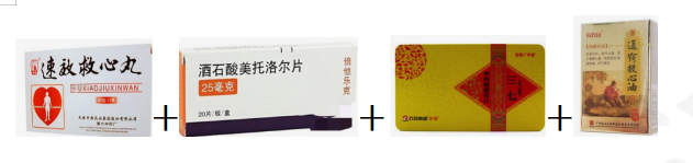联合用药:速效救心丸+美托洛尔片+三七破壁饮片/加味灵芝菌片+通窍救心油;