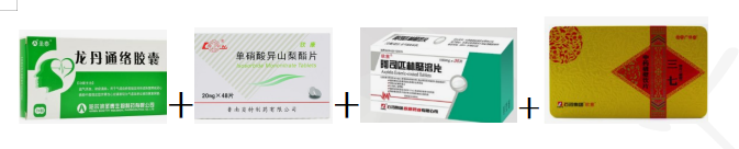 联合用药:龙丹通络胶囊+单硝酸异山梨酯片+阿司匹林肠溶片+三七破壁饮片;