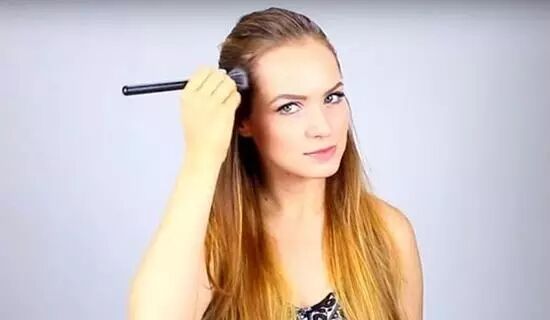 方法一:对于会化妆的女生非常简单方便。首先,选择一款适当大小的化妆刷,编编建议选择刷毛比较短比较硬的眼影刷,蘸取一款和发色相近的修容粉、眉粉或者眼影。接着从发际线周围的发根处开始,补足发际线空隙,慢慢向外晕染,让颜色和发根衔接得更加自然。最后再用眉笔淡淡地勾勒出根根发丝的形状就大功告成啦!
