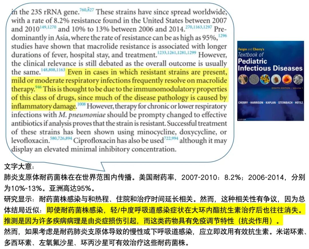 我所阅读的其他英文指南、教科书,从未提及多疗程使用阿奇霉素以治疗肺炎支原体感染,因为没有高质量证据支持多疗程方案。它通常还会提醒: