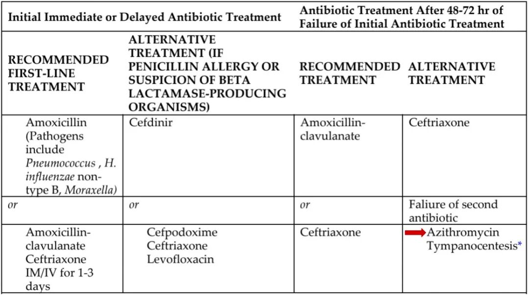 另外,治疗儿童急性中耳炎,阿奇霉素也是最靠后的选择(见下图红色箭头所指)。