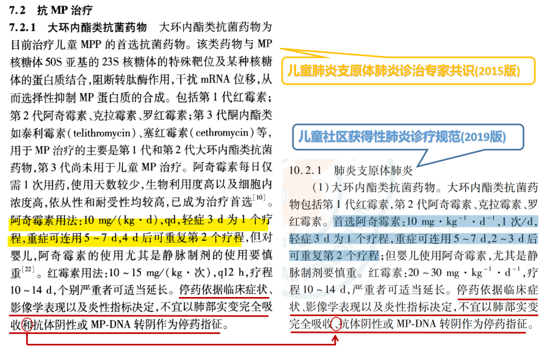 阿奇霉素治疗肺炎支原体的多疗程方案见于国内两个指导性文献。