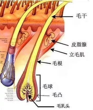 首先我们要对头发有一个基本的认识。简单点说,头发从下到上:毛乳 头、毛囊、毛根和毛干。我们都知道脱发外在表现为:掉发速度大于生发速度,掉发与生发的平衡被打破。归根到底,其实就是我们的毛囊细胞生长(毛乳 头细胞分裂)受到阻碍。