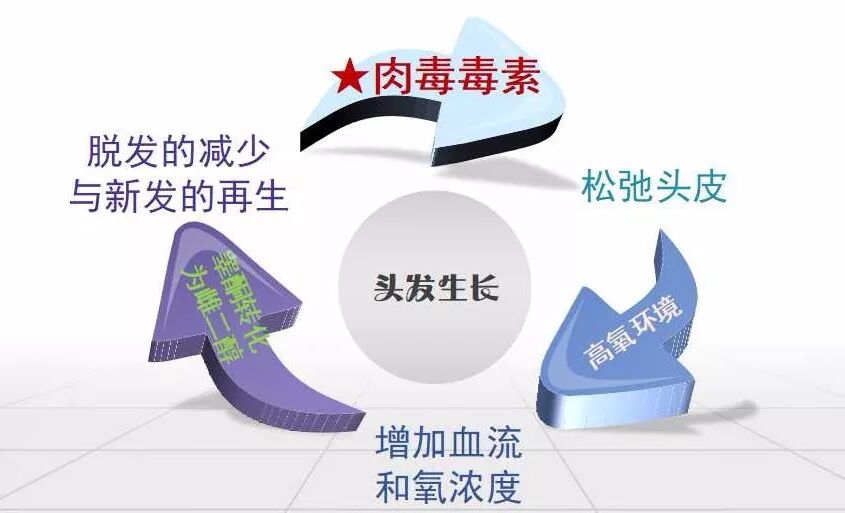 从作用机制上,肉毒毒素治疗脱发是利用改善人体自身的内环境,改善土壤环境让头发正常地生长,不会出现相关并发症。