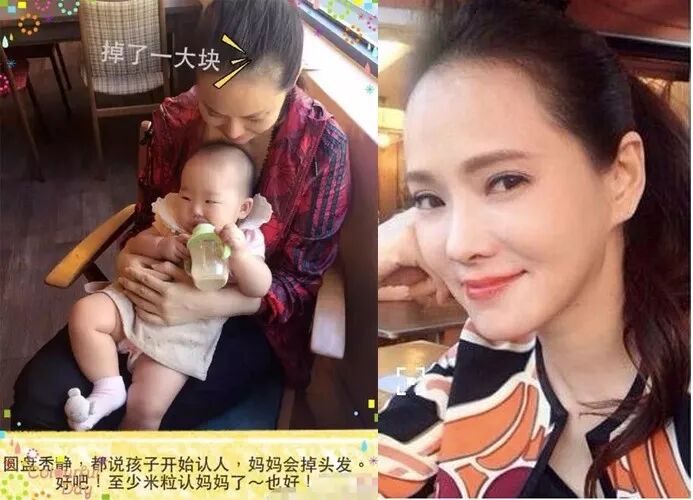 像很多女明星,在生完孩子之后出席活动经常被拍到发际线后移的问题。比如伊能静在微博自嘲秃头,感叹产后脱发严重,不得不去看医生。