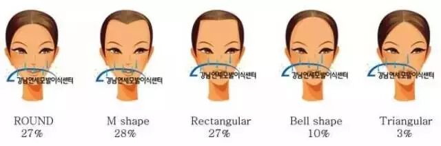 女生的发际线形状大概可以分成以下五种:圆形,M字型,方形,椭圆形以及三角形。