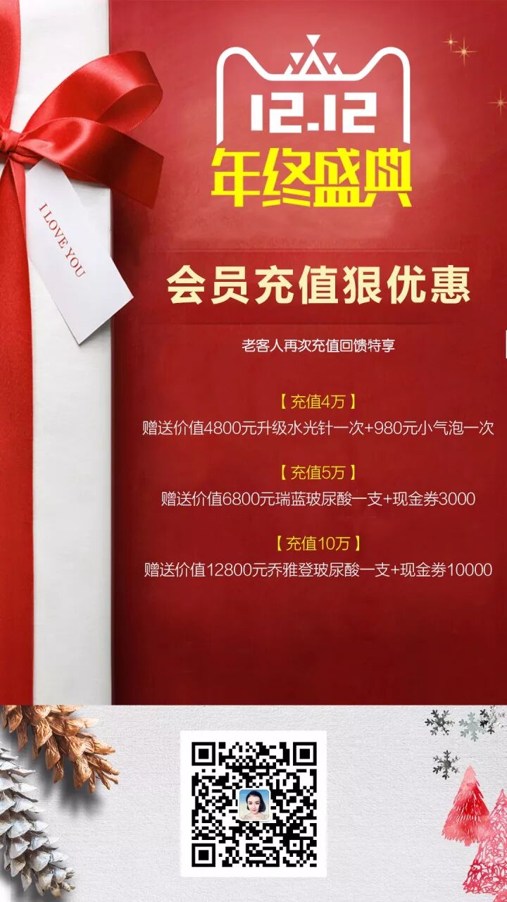 最后,12月,2017就要过去了,我会尽量满足每一位求美者的要求,仙女们有啥需求都可以提(只要别太过分,别总让我白送就成)。有项目需求或者需要预约,可以添加我的个人微信号,活动太多,请大家多看朋友圈~最后,附上最新优惠~![]()