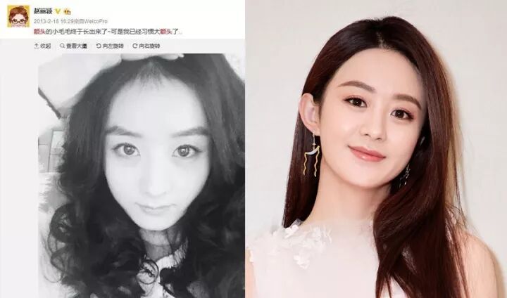 赵丽颖早前也曾在微博感叹过她骨骼清奇的发际线,后来发际线就进化成整齐圆润的形状,看起来减龄又可爱~