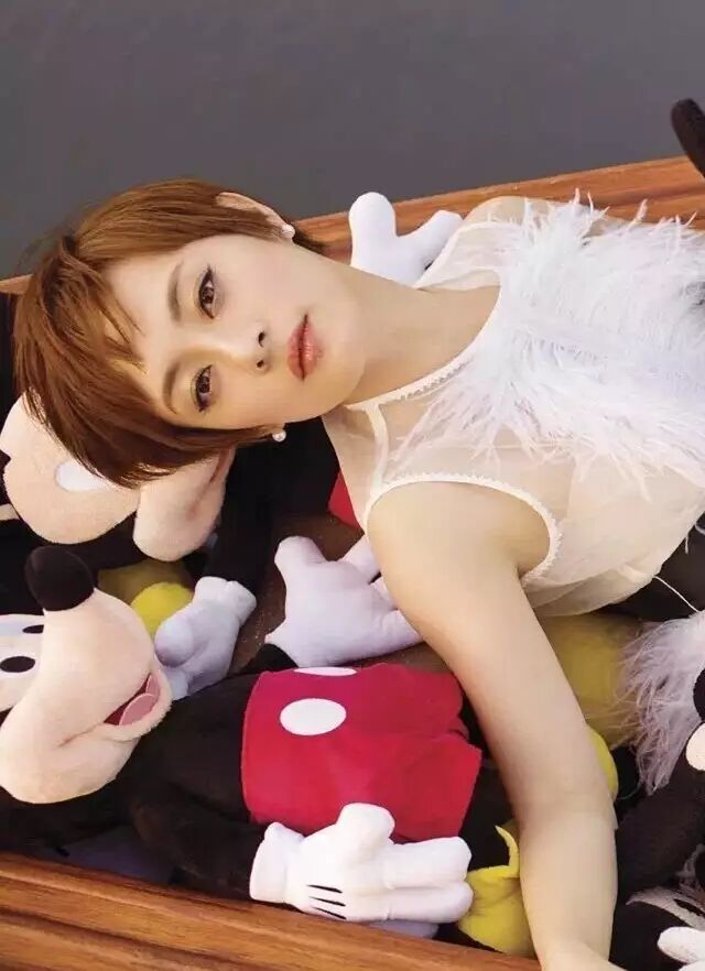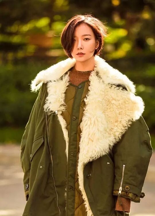 在韩国女团的时期,她留过比较厚重的齐刘海,看起来青春活力十足~这个发型很适合发际线高的女生~不过要注意把控自己的穿衣风格,不然容易显得幼稚~▼