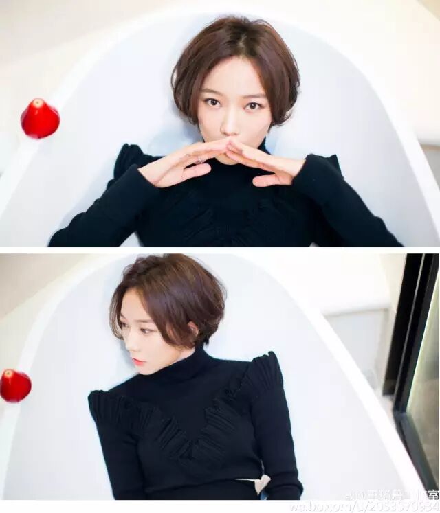 剪了齐耳短发的娘娘,眼睛看起来更大更水灵,搭配短款的法式刘海,看起来非常时髦,也让人完全察觉不出她额头宽大的问题~喜欢短发的可以参考孙俪的这款~▼