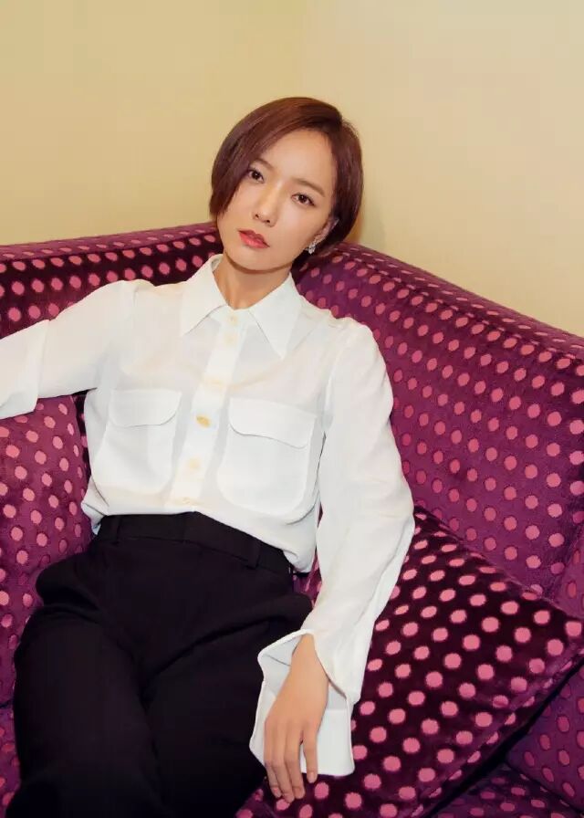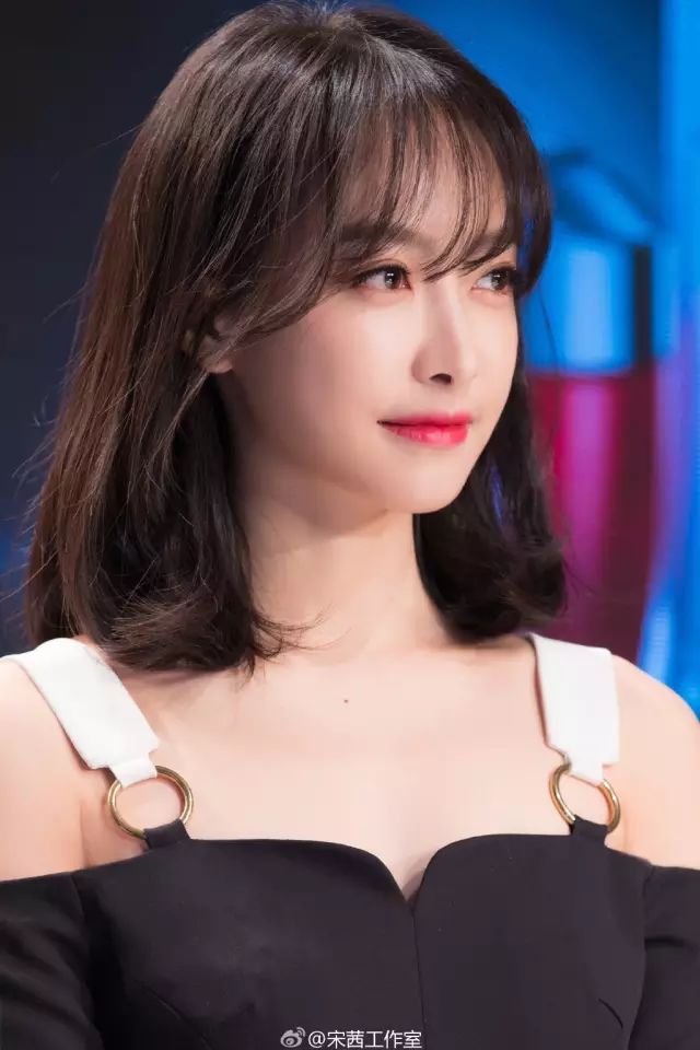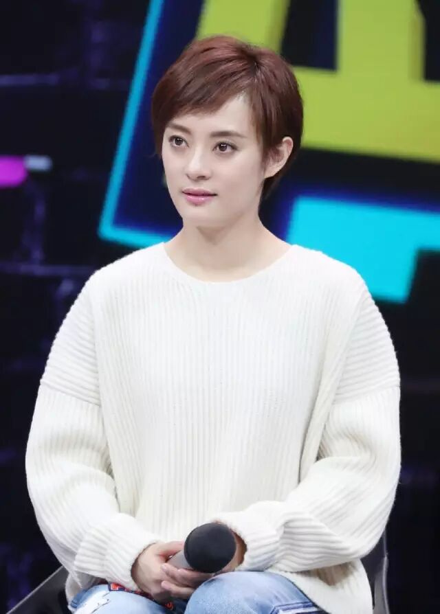 气质温和的她最近把发型换成了短款的BOB头,大片的长刘海,帮助她遮挡过高的发际线,修饰额头~攻气十足~▼