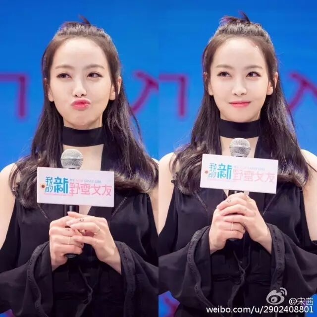 应该很少有人注意到娘娘额头大发际线高的问题吧~她的额头属于比较宽的类型,又是短短的小脸,如果不留刘海,看起来问题会更突出~▼