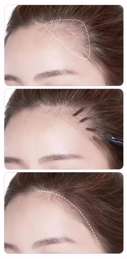 ▲重点呢,其实就是在这块三角区补出一些头发,就能使发际线前移,看起来没那么秃了。