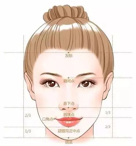 ▲别盲目地觉得自己发际线过高,以这张脸部黄金比例图来做个自我判断,发际离眉间点的距离应该小于整张脸长度的三分之一。