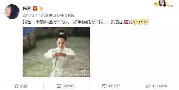 而杨幂本人也曾在微博自黑自己的发际线问题,说自己要去植发。
