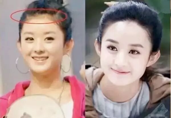 圆形发际线最具代表的人物就是赵丽颖了,但是从赵丽颖早期的照片可以看出她的发际线是后天形成的。
