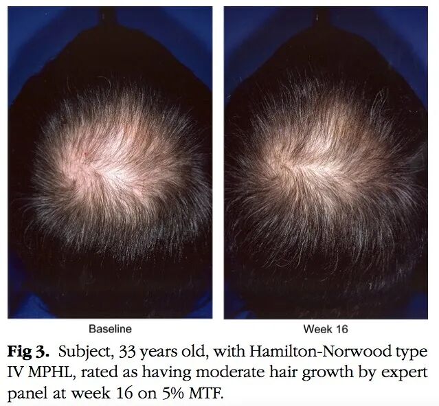 2007年11月《美国皮肤病学会杂志》发表了多位医学博士的临床测试结果,外用5%米诺地尔生发泡沫(MTF)16周后,有70.6%受试者感受到了效果。