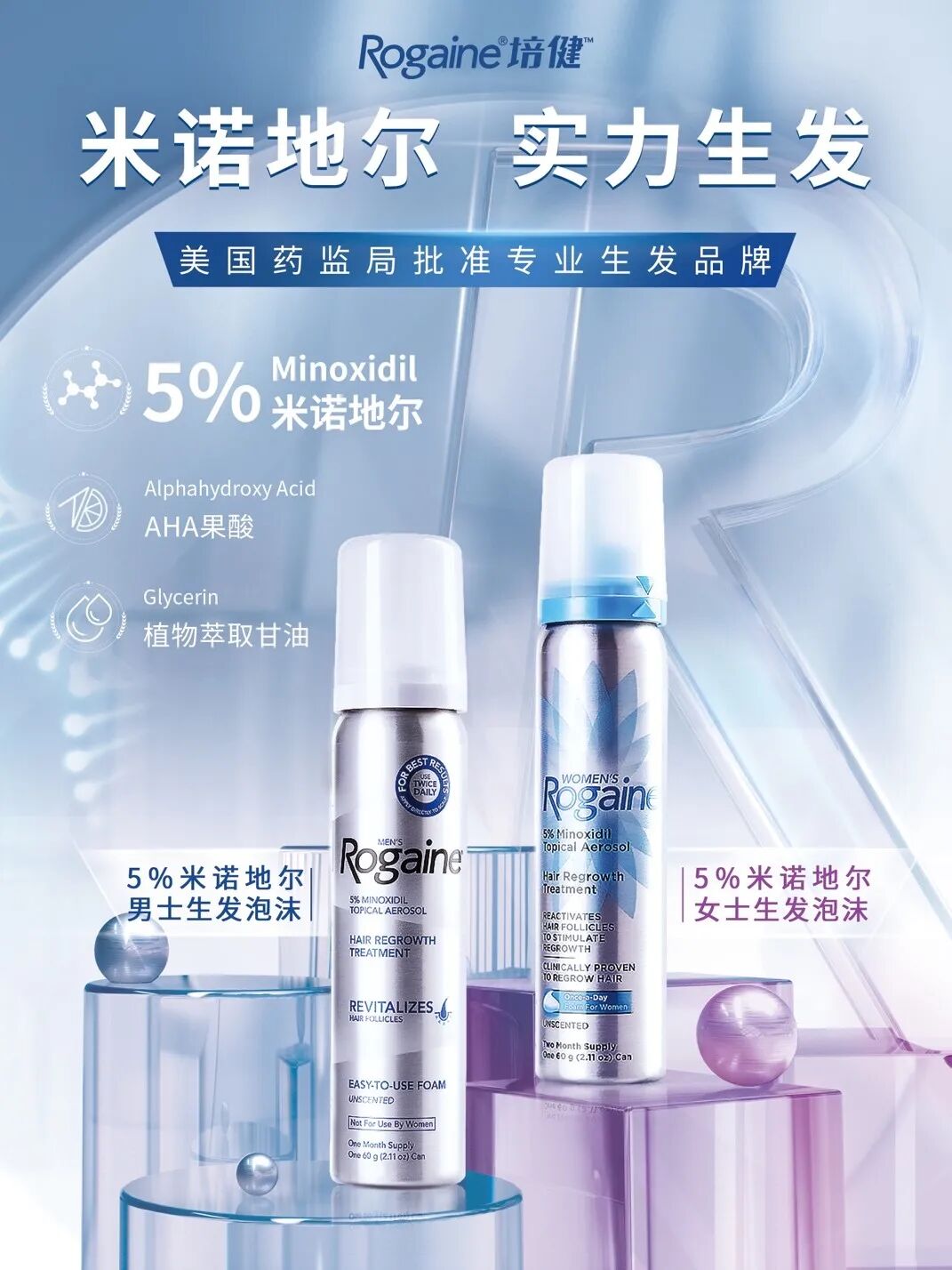 随着落地中国,Rogaine培健5%米诺地尔生发泡沫给中国消费者带来不同以往的用户体验,该产品分男女两款,分别于2011年和2014年通过美国药监局(FDA)批准上市。