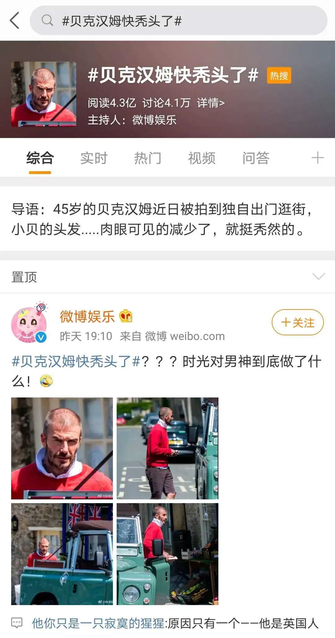 近日,当贝克汉姆快秃头了冲上微博热搜,更是让不少网友秃然慌了......