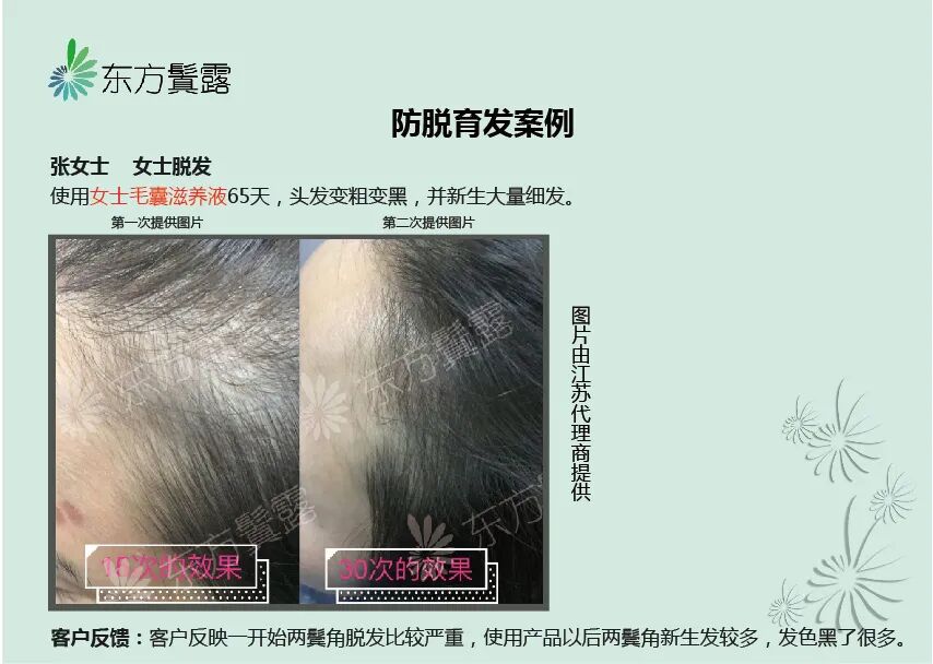 东方鬒露毛囊滋养液主要调理头皮环境,起到控油防脱、抑菌止痒,让头皮更清爽,同时滋养和修复受损毛囊,根治毛囊炎。
