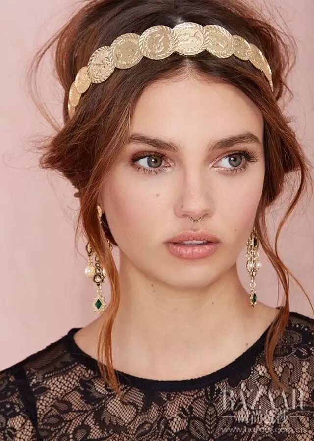 如果你喜欢把头发梳起来,试试这样的发带,稍稍往下戴一点,可以把刘海压低,显得发际线也低了,小心机get有没有?