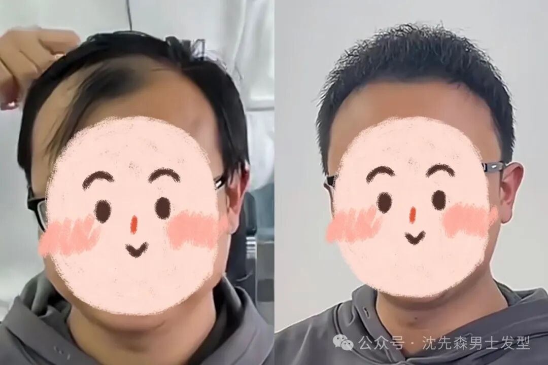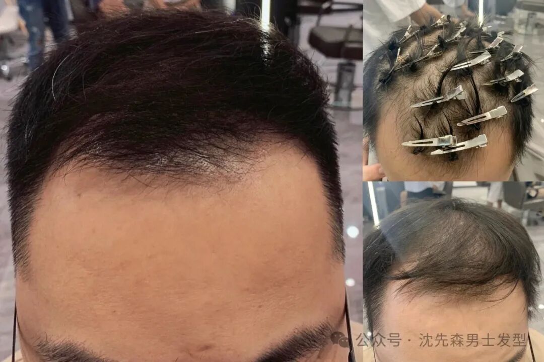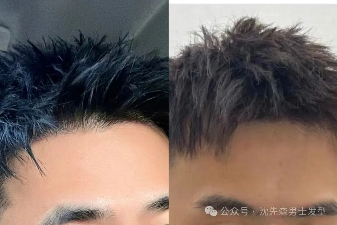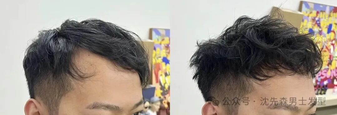 地中海这类发际线主要特点就是中间发量特别少,有些热喜欢留个长发的把两边头发盖住中间的在社交场合如果风太大的情况就让两边的头发掉下来,那就直接社死尴尬瞬间了,那么像这类发际线就不建议头发留太长了可以考虑把头发剪短3cm起到增加发量的效果,两侧头发剪短,刘海直接剪短剪齐,通过摩根烫把头顶发量增密达到蓬松度,这样整个头顶的发量就变多了,这样就像图二的的发际线也协调多了,看上去清爽又帅气妥妥的一个帅锅!
